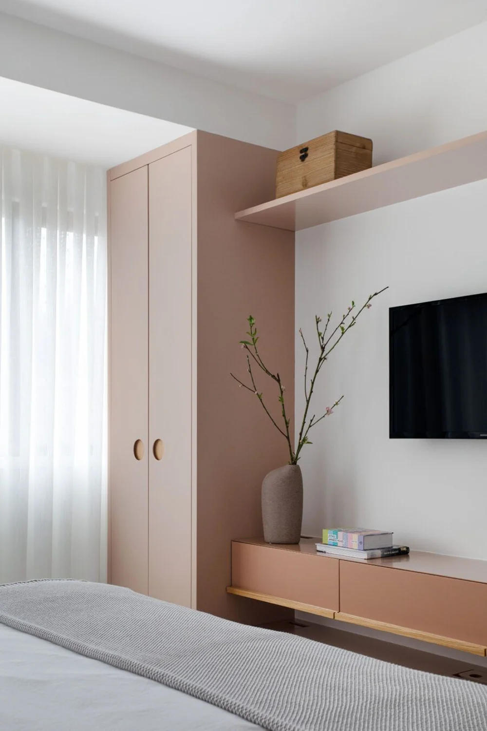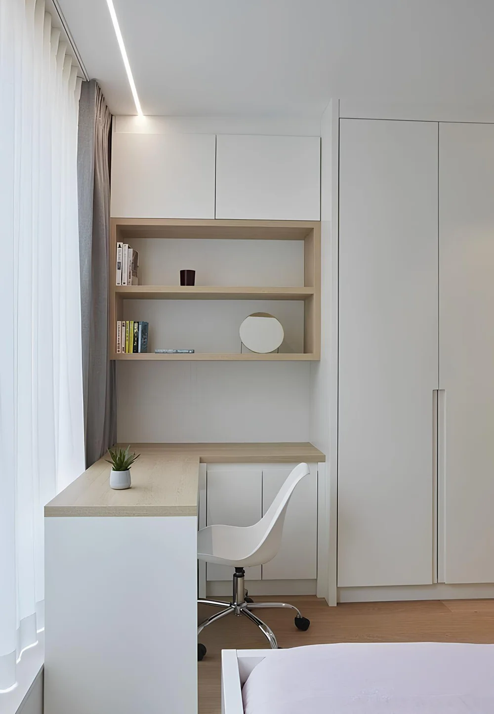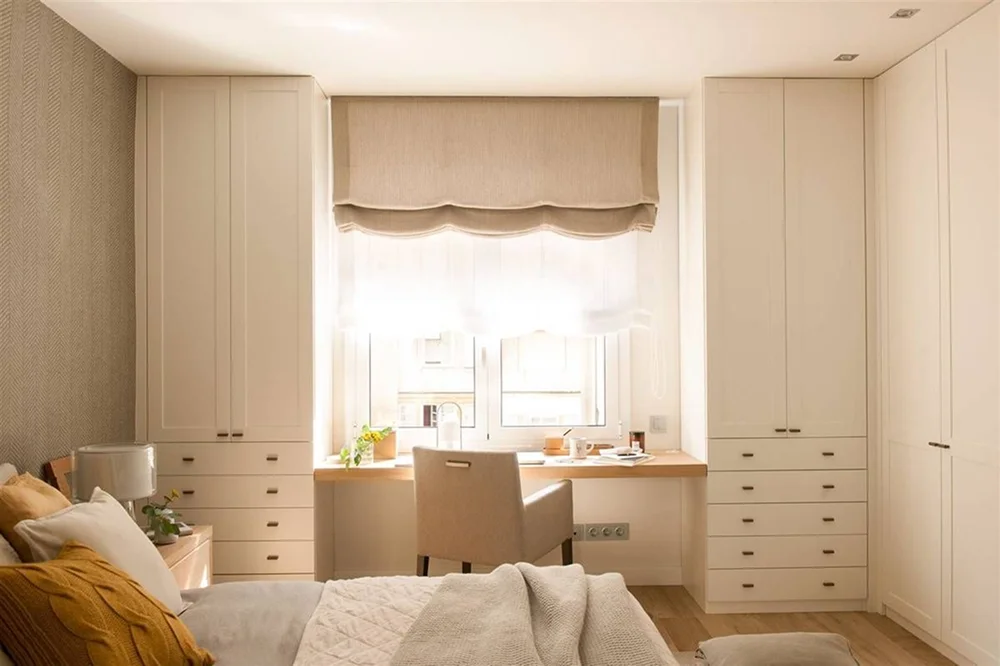 7. Комбинированный со встроенным столом. Многофункциональная мебель для спальной комнаты актуальна, если места мало.