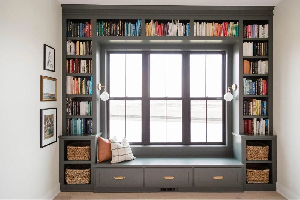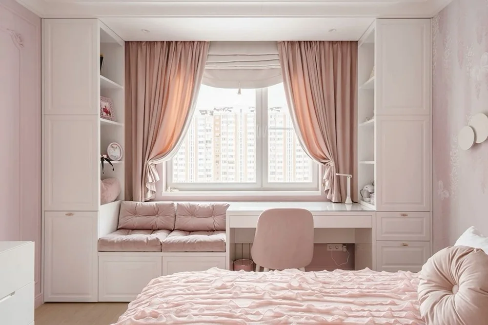 6. В приоконной зоне. Шкаф и комод могут находиться как по бокам, так и в нижней части.