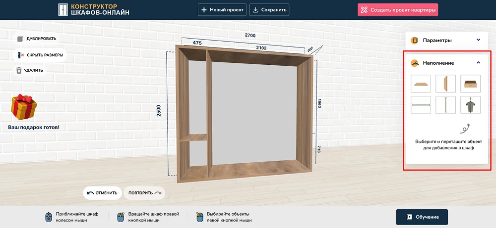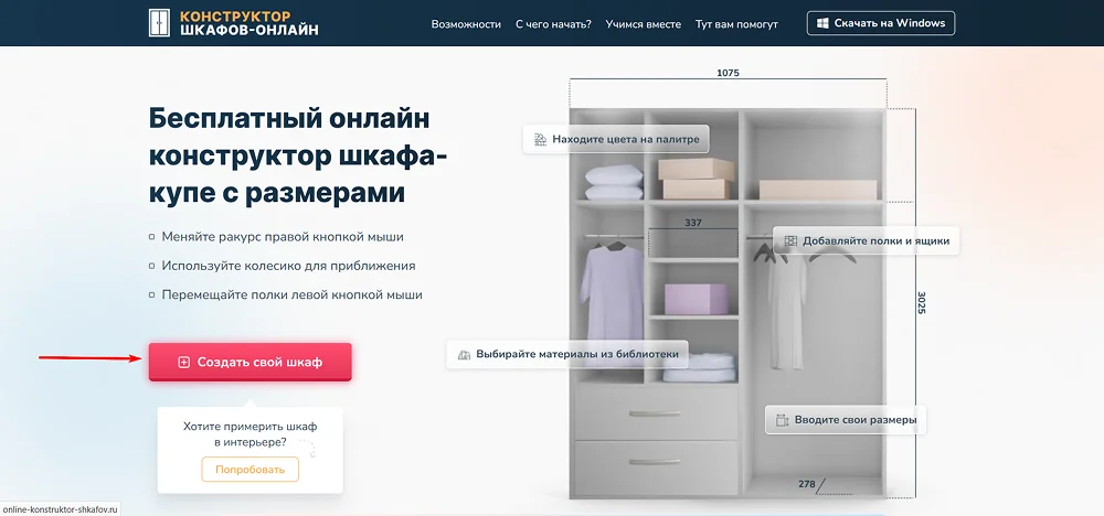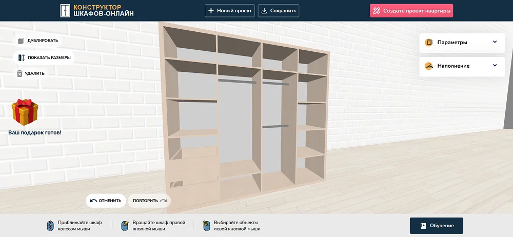 Если в магазине нет идеальной модели — оформите индивидуальный заказ по собственному проекту с размерами. В сервисе Конструктор шкафов-онлайн удобно сделать макет за несколько минут — даем пошаговую инструкцию, как.